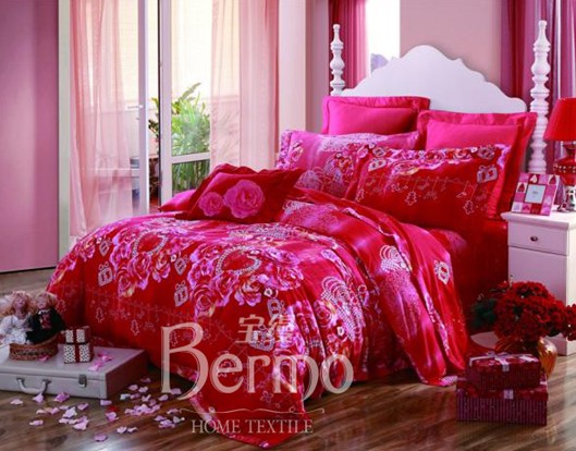 2014-10-17本套婚慶產品采用高織高密60S仿絲棉大提花面料,具有極高的光澤度和無與倫比的滑爽質感,視覺上高貴雅致。更值得一提的是,面料為大版提花面料,整個被面由大朵的立體牡丹花卉或密或稀精心組合而成,形成強大的視覺沖擊力,純正的中國紅色澤濃郁,交織出貴氣十足的提花紋樣,大氣的花型搭配貴氣的面料,表現大氣復古的喜...[繼續閱讀] -