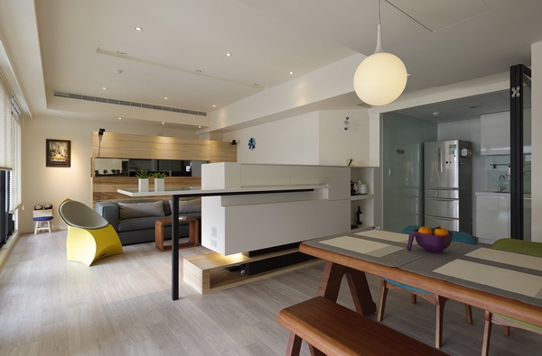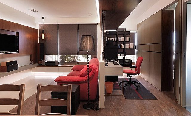 2013-3-19這是一套男士的單身公寓住家空間,空間干凈又舒服。整體的空間以深色實木的色調為主,顯示出屋主穩重成熟的魅力。客廳與書房之間用一扇百葉窗隔開,完整的將空間一分為二。廚房設計為玻璃門延伸了整個空間,餐廳實木的餐桌和配套的椅子與房間整體顏色格調一直。更為奇妙的是書房后邊設計的一堵墻即是儲物柜,把柜子下層打開...[繼續閱讀]