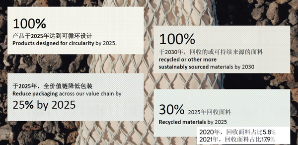 海恩斯莫里斯集團作為在全球紡織品循環領域有諸多探索實踐的領先者,明確可循環和氣候變化是集團可持續發展的兩大重要主題。海恩斯莫里斯集團公共政策經理許佳慰在會議研討階段分享海恩莫里斯集團在紡織品循環的引領目標和實踐。