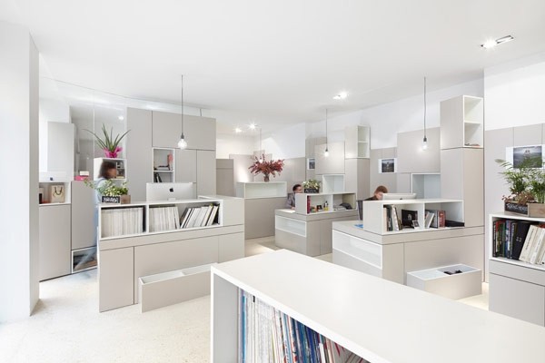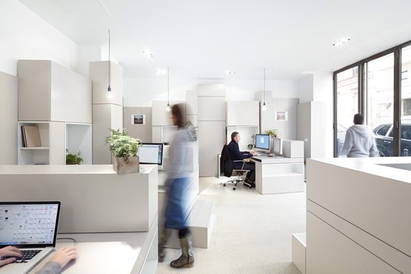 我們常常見到各種不同設計的辦公樓,有的創意多變,有的充滿活力的氛圍,而這家Hypernuit辦事處由h2o architectes打造,位于一幢大樓的一層。辦公室以白色為主色調,面積65平米,落地窗帶來良好的采光,格子般堆砌起來的空間方便改造又(you)具有靈活性。