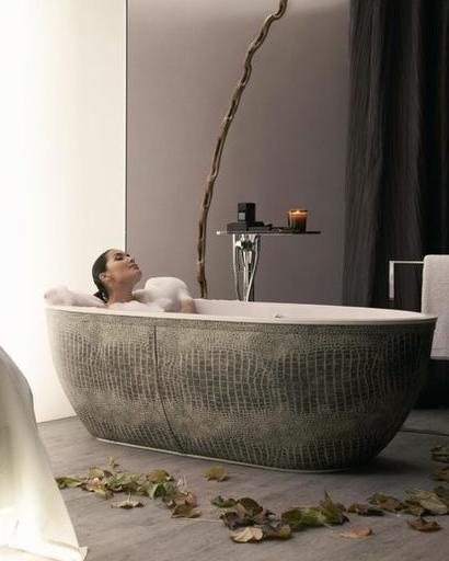 2013-11-26非洲皮膚的浴缸—鱷魚皮,你是否已經厭倦了白色瓷器?新的材質的表面意味著你可以根據心情和主題選擇你想要的外觀。如果想要有異國情調的外觀,這款鱷魚壓紋皮革如何?或是這個新鮮好玩的牛皮裙?不知道你是怎么想的,每次我看到這頭牛時,總覺得歡樂。你認為太離譜了嗎?相同的浴缸在有昏暗內飾顏色和鄉村風格的浴缸中顯得...[繼續閱讀] -