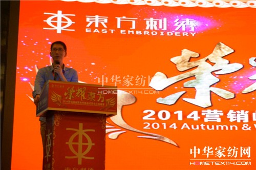 2014-5-152014年5月15日主題為“榮耀東方”的東方刺繡“2014營銷峰會暨秋冬新品訂貨會”在上海市松江區拉開帷幕,這是自2014年初“東方刺繡”經國家工商總局認定為中國馳名商標后,首次大規模、高規格的新品訂貨會。來自全國各地的經銷商代表出席了本次會議,活動現場熱鬧非凡。圖:王永敏總經理發表講話會議伊始,公...[繼續閱讀] -