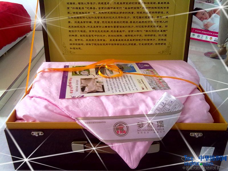 本品采用優質桑蠶雙宮繭為原料,經傳統手工抽絲工藝及現代科學除味配方加工精制而成。屬于天然綠色產品和家居中的極品,富含18種氨基酸,具有抗菌、抗過敏及親膚的天性,長期使用,可促進人體新陳代謝,增強細胞活力,延緩衰老,并可預防肩周炎、關節炎、風濕、感冒、過敏等疾病。由于蠶絲是能夠防霉的天然纖維,因此,它對防止病菌滋生,護理肌膚衛生同樣具有非常明顯的功效。