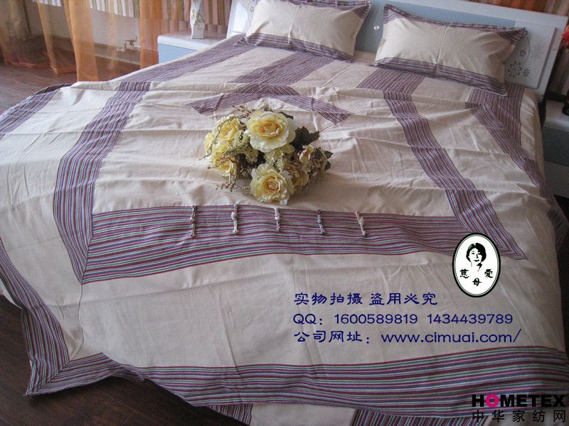 慈母(mu)愛”牌老粗布床(chuang)品有著其他(ta)床(chuang)品不(bu)可(ke)比擬的優越性: (一(yi))、綠(lv)色天然、環保健康(kang)、主要(yao)原料是(shi)100%純棉(mian)線制(zhi)(zhi)成,從種(zhong)植到(dao)手織布制(zhi)(zhi)品,不使用農藥和(he)化(hua)學染劑,紡織品不含甲醛(quan),偶氮(dan)等化(hua)學重金(jin)屬離子(zi),完全(quan)符合歐共體(ti)(ti)紡織品生(sheng)化(hua)標準規(gui)定:“禁(jin)用致癌偶氮(dan)染料的要(yao)求”,是(shi)真正的綠(lv)色生(sheng)態紡織珍品。 (二)、冬暖夏(xia)涼(liang)、透氣吸(xi)汗 柔軟舒適,透氣吸汗,適用于貼(tie)身使用;吸附人體(ti)皮膚上的汗水和微(wei)汗,使體(ti)溫迅速恢(hui)復(fu)正(zheng)常。 (三)、抗(kang)靜電、防螨止癢,親合肌膚(fu),有人類“第二(er)肌膚(fu)”之稱。PH值(zhi)呈酸性(xing),對(dui)皮(pi)膚(fu)無刺(ci)激;符(fu)合環(huan)保及健康(kang)要求。 (四(si))、線粗紋深,質地厚重,不卷邊(bian) 不褪色(se)、不易(yi)搓起、不起球(qiu)(純棉(mian)縫制(zhi),不帶自由電(dian)荷,棉(mian)纖(xian)維不易(yi)變形(xing))不卷邊,由于粗(cu)布線粗(cu)、紋深,其表面形(xing) 成(cheng)無(wu)數個按(an)摩(mo)點對(dui)人(ren)體有意想(xiang)不到的按(an)摩(mo)作用。 (五)、綠色保健、改善睡(shui)眠, 使用老粗布(bu)使人(ren)體(ti)產生溫熱效(xiao)應,特別是彩(cai)棉(mian)的(de)(de)紅(hong)外線作用于人(ren)體(ti),增加人(ren)體(ti)的(de)(de)微循環(huan)血流(liu),激活組織細胞(bao),有效(xiao)的(de)(de)調節(jie)神經系統,疏通(tong)經絡(luo),改善睡(shui)眠質(zhi)量.融自(zi)然、和諧、綠色、環(huan)保、健康于一(yi)體(ti),是現代人(ren)返樸歸真、回歸自(zi)然的(de)(de)時尚(shang)佳品.